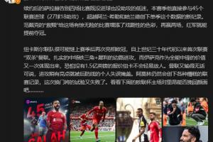 詹俊:续约后的萨拉赫告别四场比赛既没进球也没助攻的低迷,本赛季他直接参与45个联赛进球(27球18助攻),超越阿兰-希勒和哈兰德创下单季这个数据的新纪录。范戴克的“救赎”给这场有惊无险的比赛增添了戏剧性的色彩,再赢两场,红军就能提前夺冠。